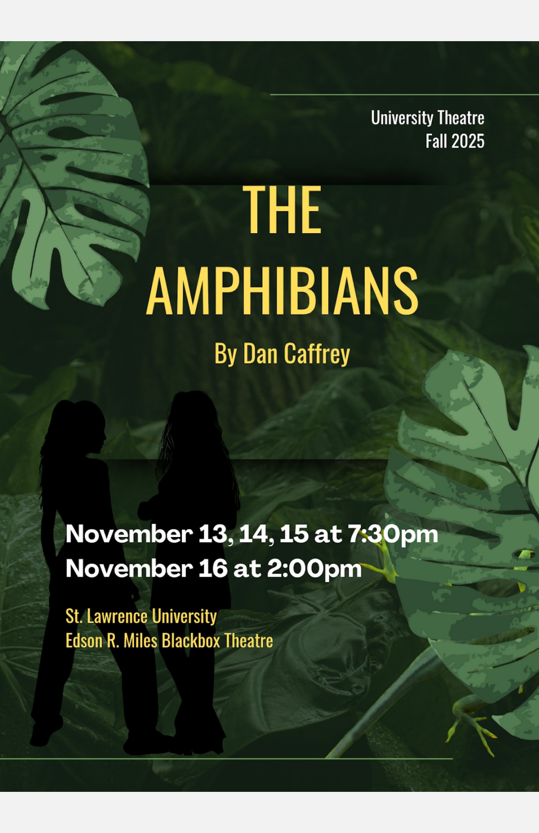 Set in the future, The Amphibians takes place in west central Florida shortly after we've passed the point of no return in the fight against climate change. When two high-schoolers unearth a wondrous discovery in the woods, they learn hard lessons about the evolution of friendship and what it means to take care of something at the end of the world.